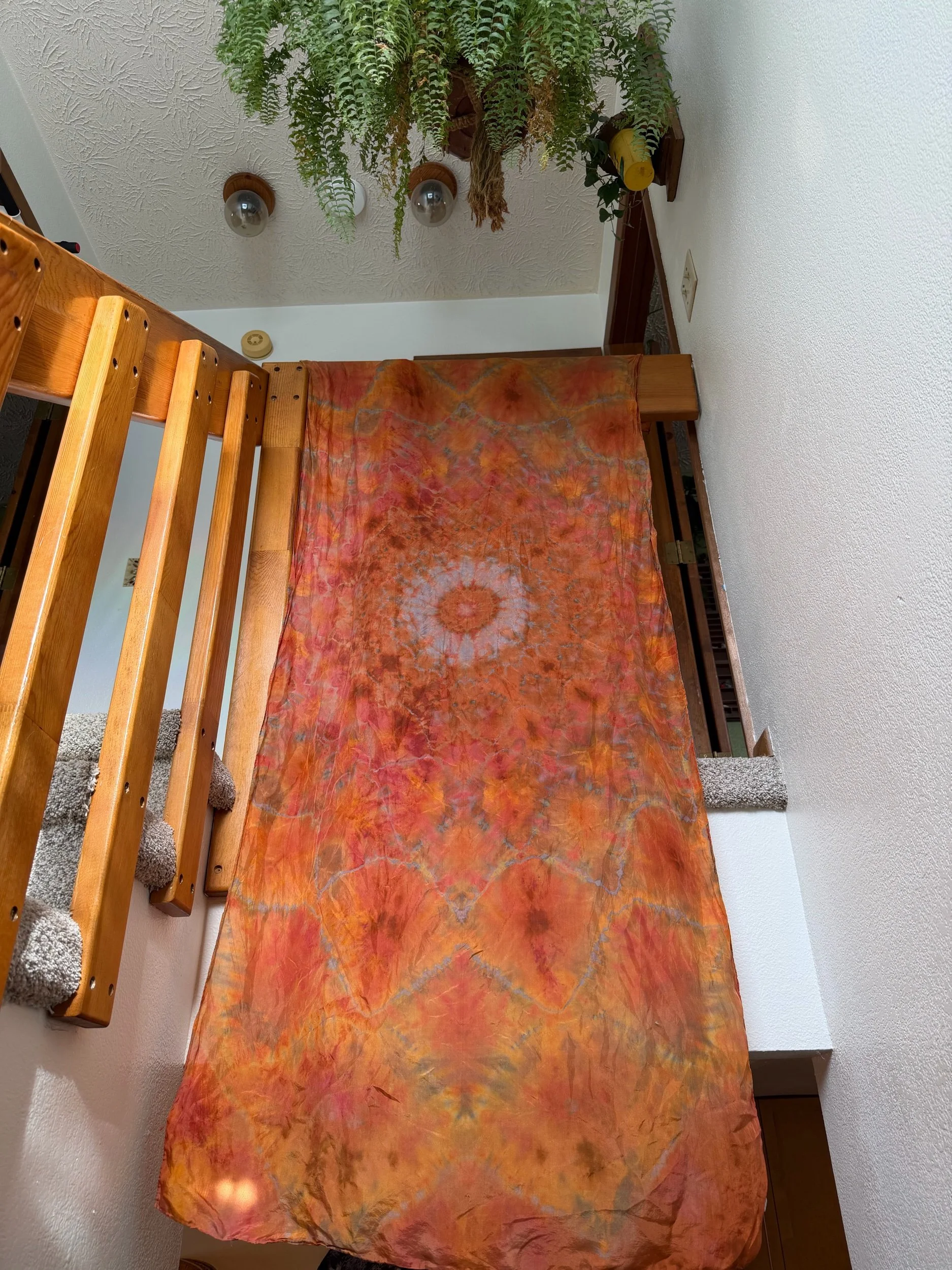 Hand dyed silk mandala dancing scarf. Great to take into the mountains and have fun. Great to use as a sarong, long head scarf or normal scarf as well!
