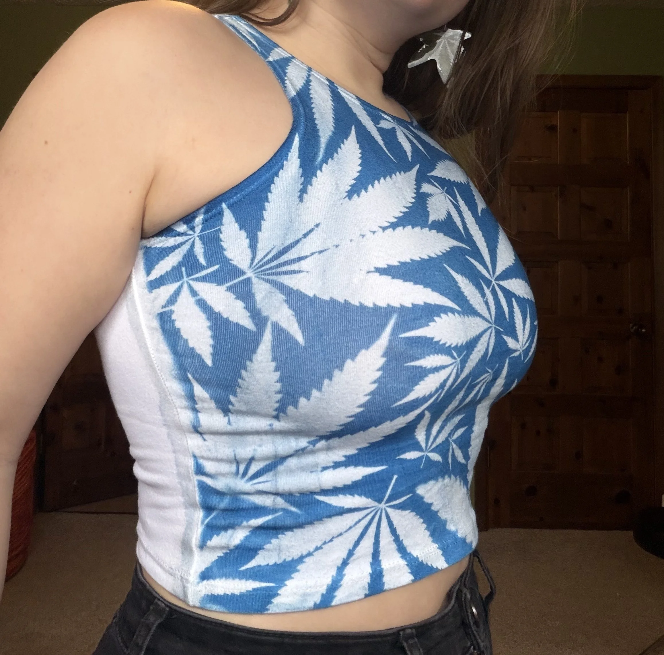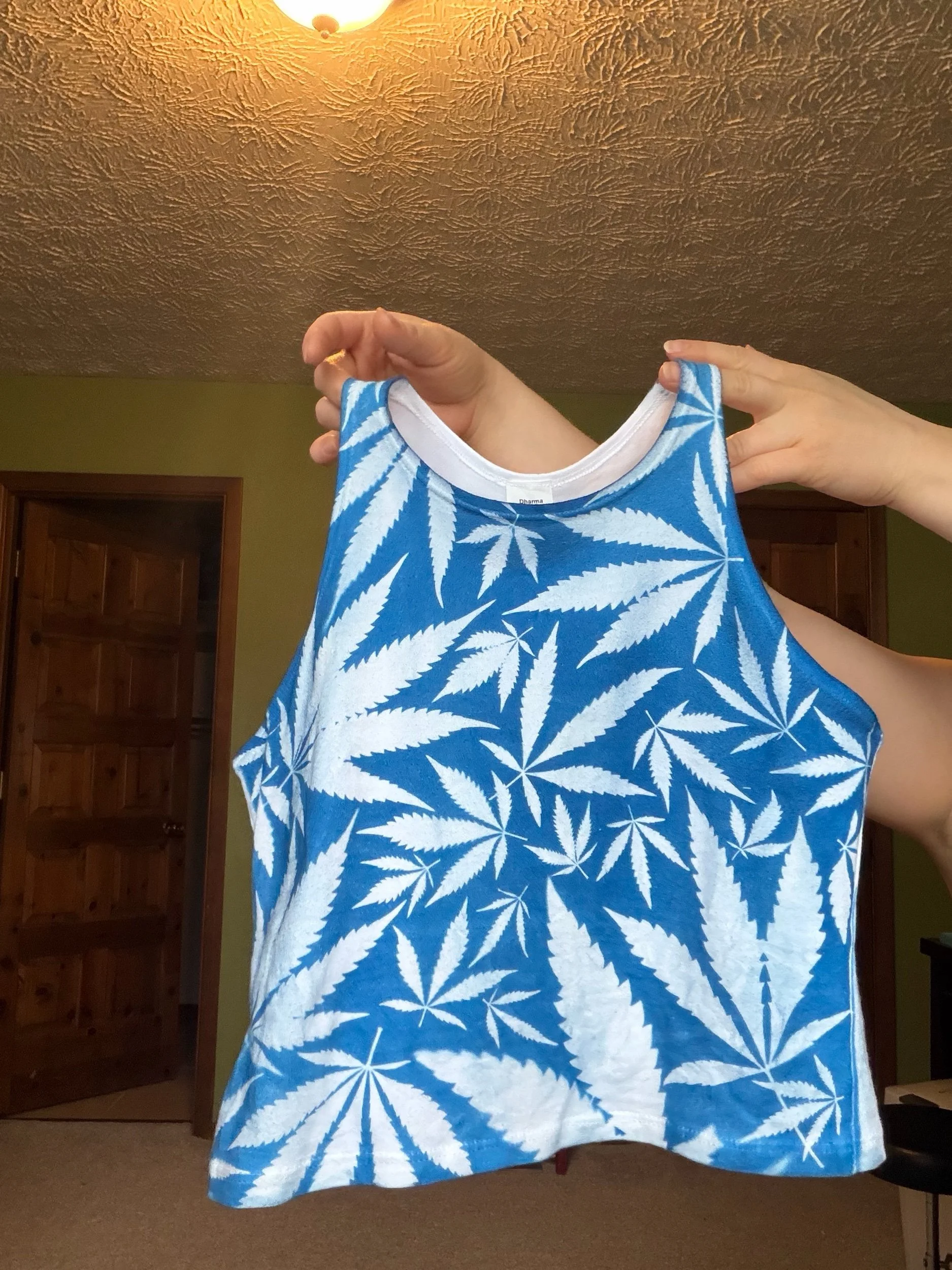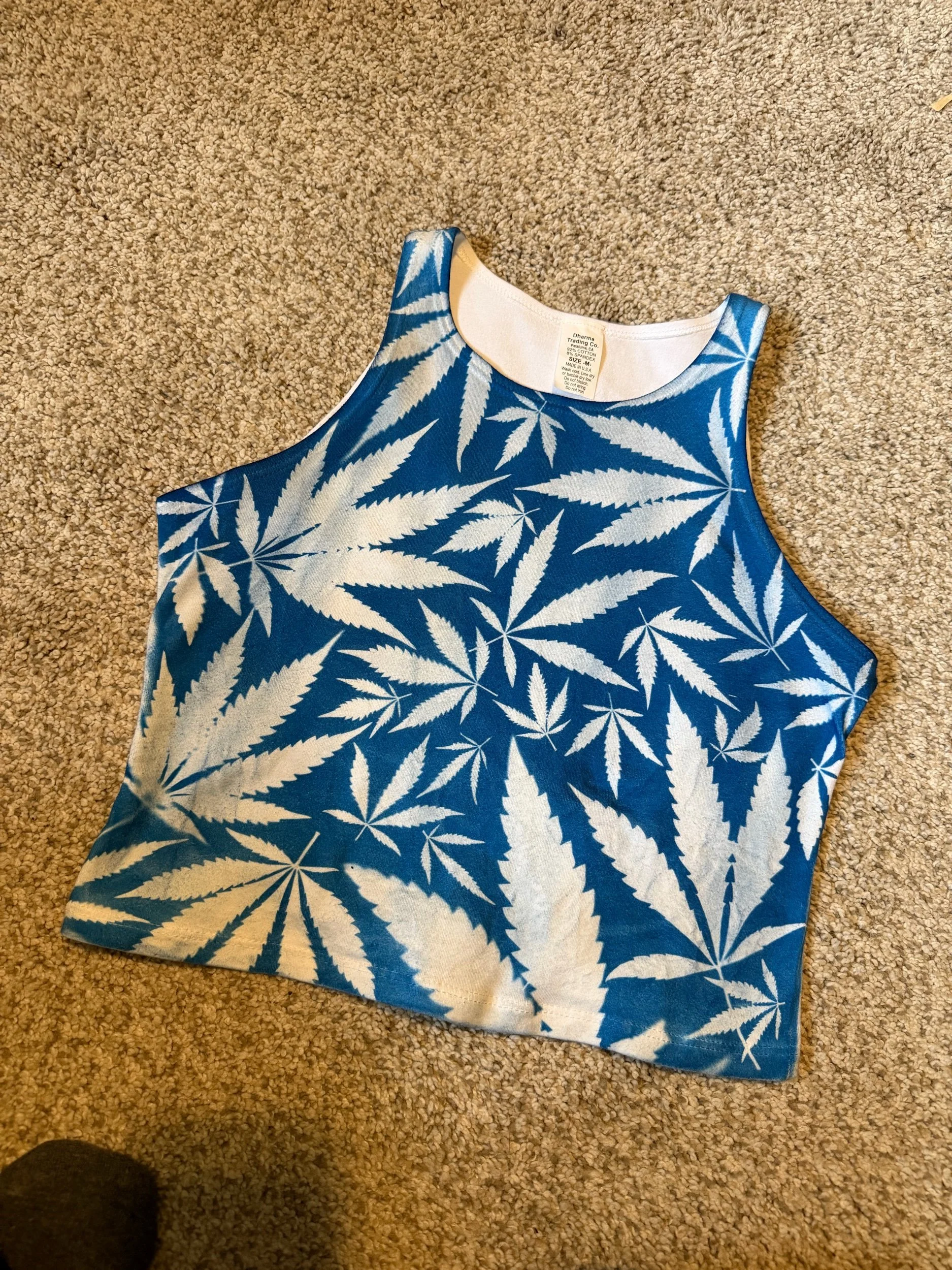 Sun printed adult cropped tank size medium made with local marijuana leafs gifted to me by a friend!